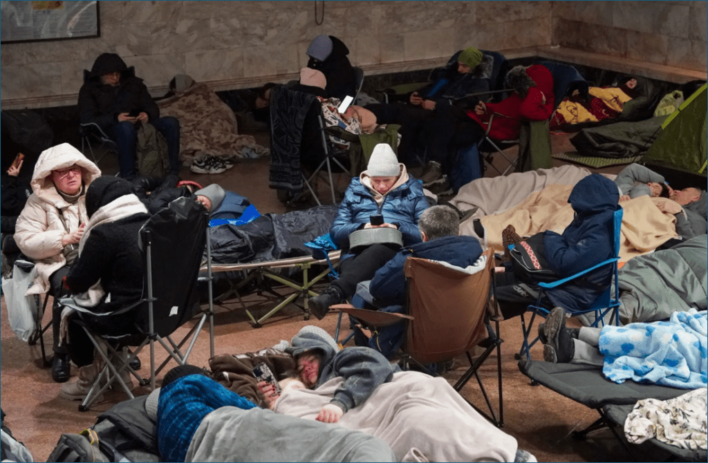 In Kyiw und Charkiw verbrachten vielen Menschen die Nacht in der U-Bahn.